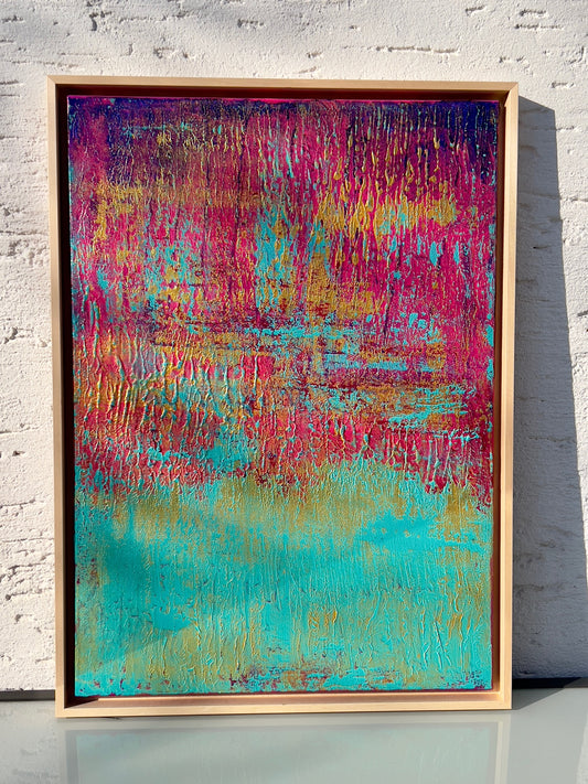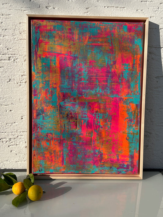 Abstraktes Gemälde Acryl auf Leinwand 50x70cm mit Schattenfugenrahmen