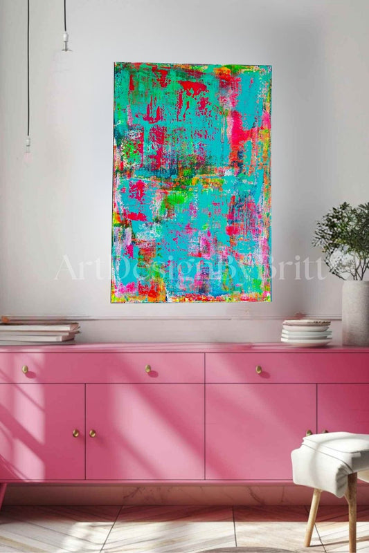 Tropic Sky – Originalgemälde in Neonfarben (80 × 100 cm) mit Lindenholzrahmen