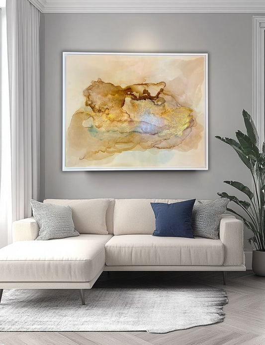 GOLDEN GLOW, Abstraktes Gemälde, Acryl auf Leinwand, 80x100cm mit Schattenfugenrahmen
