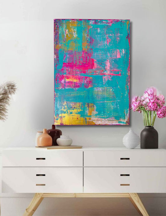 Essence of Joy – Abstraktes Acrylgemälde auf Leinwand (70x50 cm) | Original Kunstwerk mit Schattenfugenrahmen