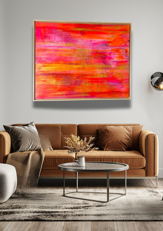 Sunset Glow - Original abstraktes Acrylgemälde, 60 x 60 cm, mit Schattenfugenrahmen