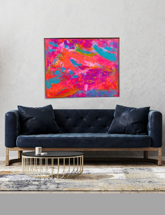 Tropic Glow - Original abstraktes Acrylgemälde, 70x100cm, mit Schattenfugenrahmen
