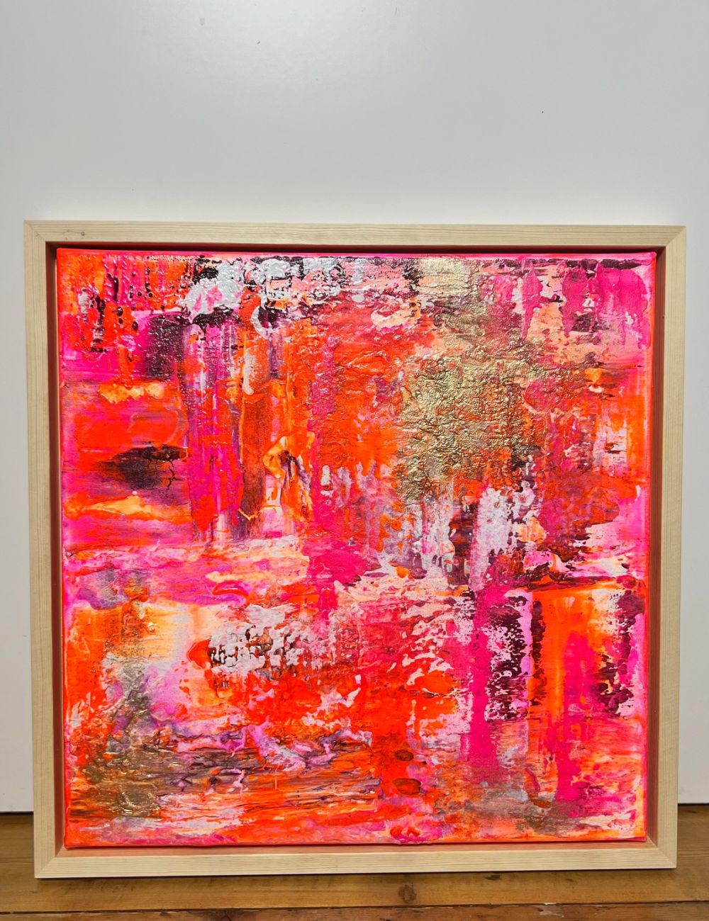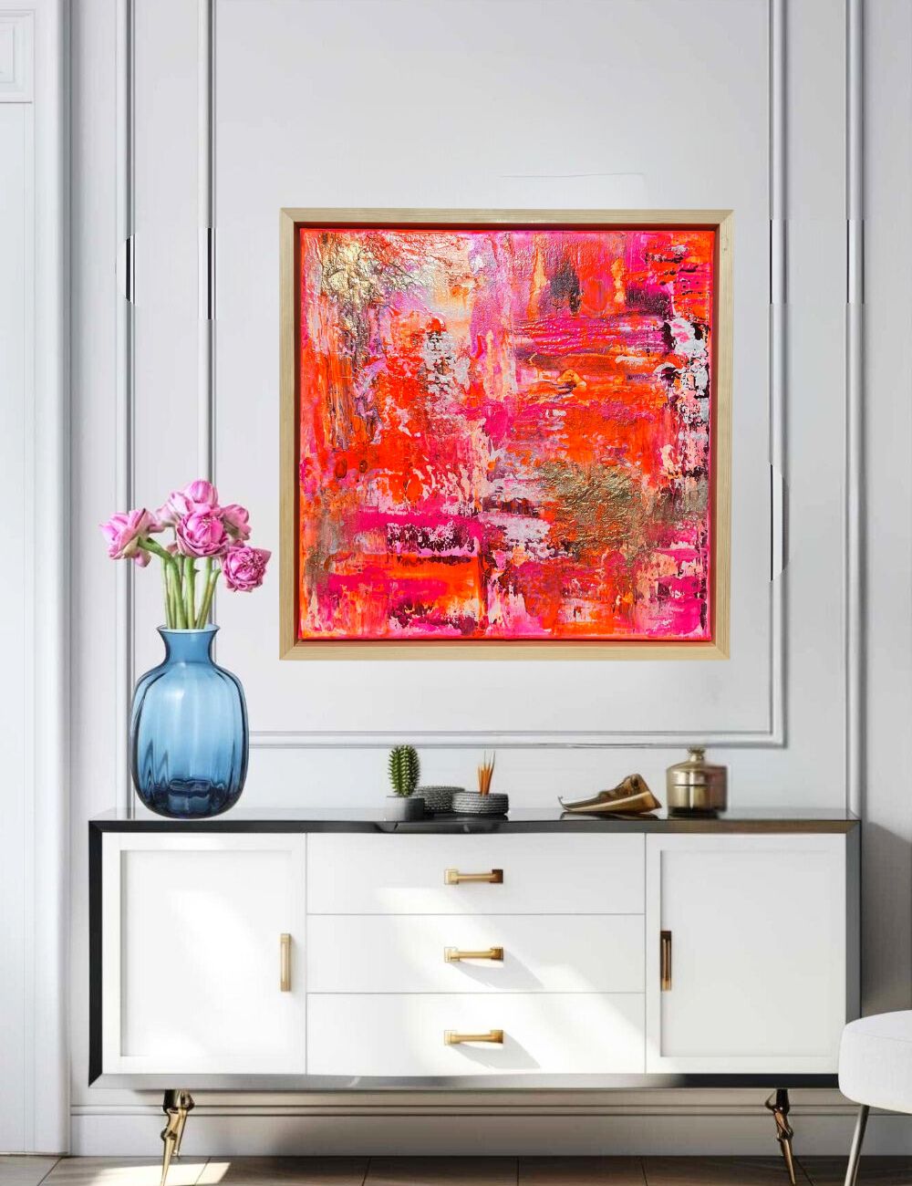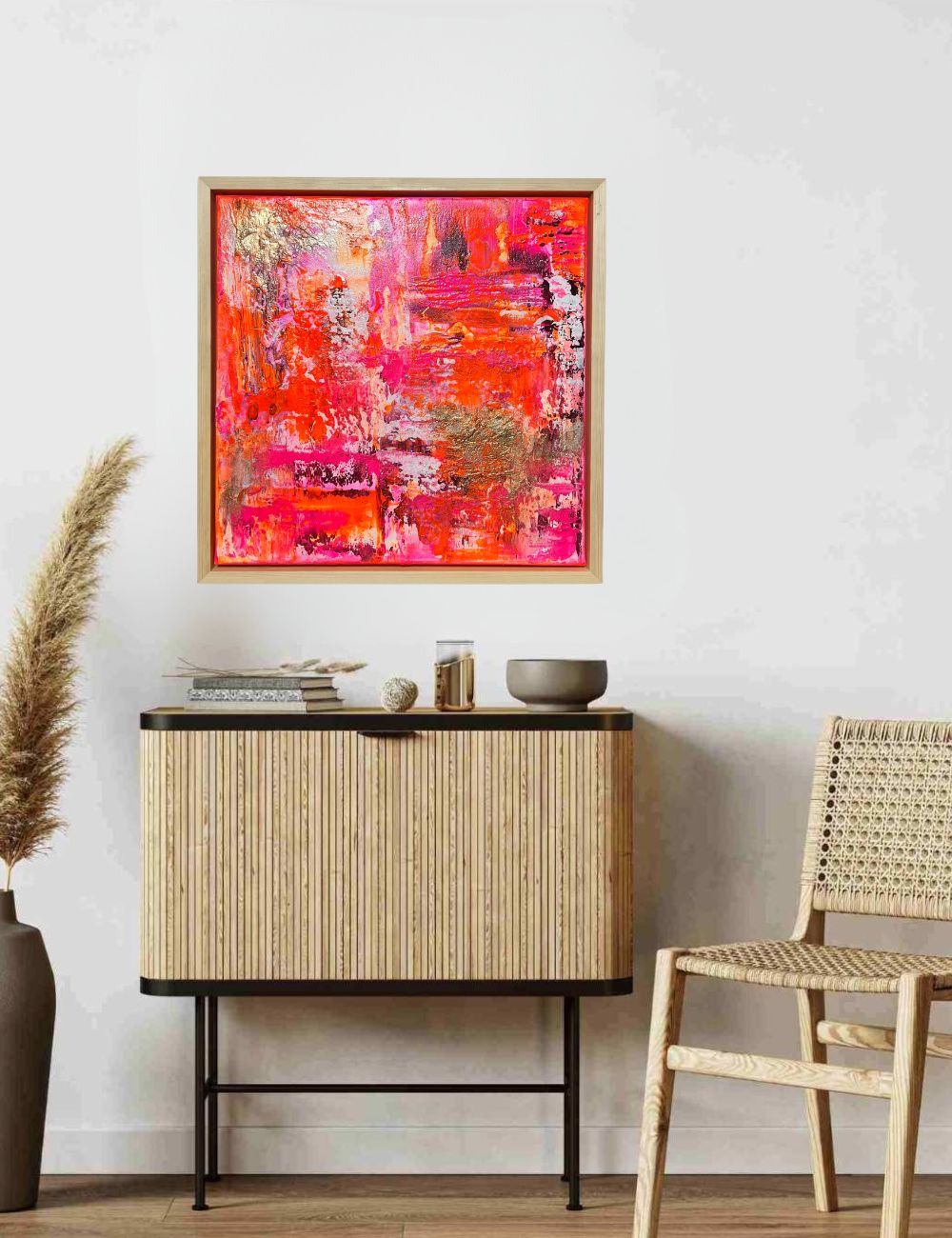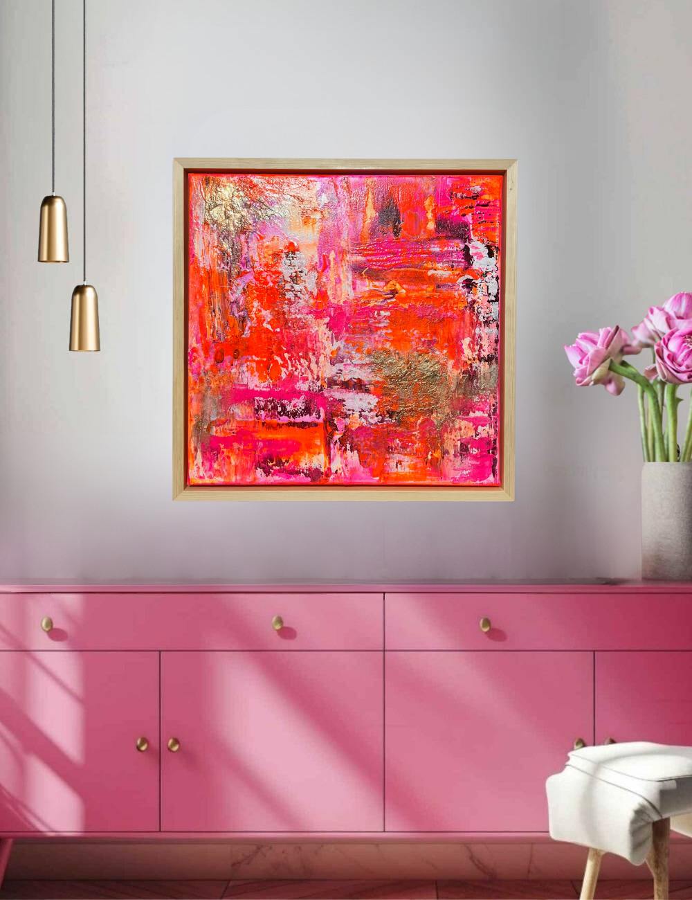 Sunset Glow - Original abstraktes Acrylgemälde, 60 x 60 cm, mit Schattenfugenrahmen
